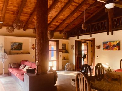 Our family of 8 - our children, spouses and 2 grandchildren spent 10 glorious days at Tim's Villa de los Mangos. It was peaceful, fun and much needed break from our busy lives. Tim arranged the suburban rental, transfers from and to the airport with Angel When we finally booked this home after 3 years of planning our family vacation, we knew it was the right choice and it exceeded our expectations. This house is a work of art, the mural "The dance of the Old Wise Men" a must read in the house manual, Tim's personal surf photos and the beautiful pottery. His house is an eclectic mixture of the antique and the modern. Our family loved cooking in the well equipped, state of the art kitchen! Irma and Eric cooked an amazing Mexican dinner, a must do! Felipa and Diego, the caretakers made it a 10 star vacation. They couldn't do enough for us and kept the house and grounds pristine. Chatting with Felipa was a hoot!! Tim is the most thoughtful, gracious and personable host! TOTAL PARADISE